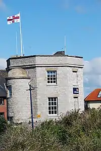 Crew facilities and storage are in the old Customs Office on the quay close to the moorings. This is a Grade II Listed building which was erected in 1850 to the design of George Wightwick. It is built from granite, octagonal in plan and three storeys high. This gave the customs officers all-round views of the area.[9][10][11]