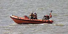 An Inshore Rescue Boat (IRB) was first stationed at Plymouth in May 1967. After a year when this was a D class inflatable, larger ILBs were provided. Initially in the form of 18-foot (5.5 m) Hatch and McLachlan lifeboats, but since 1983 by 7.5-metre (25 ft) Atlantic 75s.[4]