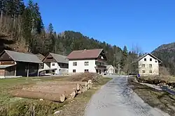 Podklanec (pronounced [pɔtˈklaːnəts]; German: Podklanz[2]) is a small settlement south of Žiri in the Upper Carniola region of Slovenia. It lies at the end of a valley where Black Creek (Slovene: Črna) and Sovra Creek meet to become the Poljane Sora River (Slovene: Poljanska Sora).[3]
