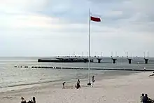 The flag marks the site of the 1945 Wedding in Kołobrzeg
