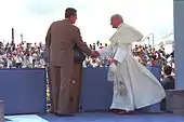Poland gained some attention during the 2012 presidential election, as Republican challenger Mitt Romney visited the country during his campaign. He was endorsed by Lech Wałęsa, but was rebuked by the pro-trade union Solidarity (Poland) because of Romney's alignment with business interests such as right to work perceived as hostile to unionists and workers' rights.[44][45] Romney made a clear outreach to Polish-Americans during his campaign, although it was criticized as superficial.[46] During the elections of 2020, 54% of the Polish-Americans voted for Joe Biden, and 42.4% voted for Donald Trump.[47]