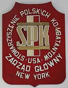 The Polish Combatants' Association (pl. Stowarzyszenie Polskich Kombatantów w Stanach Zjednoczonych, SPK),[1] organized in 1952, formally founded a year later, and terminated in 2012, was a Polish-American association for veterans of the Polish Armed Forces in the West during World War II. It was a member of the World Federation of Polish Combatants Association, an umbrella organization that included similar associations from other countries. The Association's President Janusz Krzyżanowski currently serves as the chairman of its liquidation committee, working to create a scholarly source of information about the SPK.