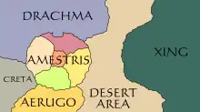 The Diarchy of Sparta was a stratocratic kingdom.[10] From a young age, male Spartans were put through the agoge, necessary for full-citizenship, which was a rigorous education and training program to prepare them to be warriors.[11] Aristotle describes the kingship at Sparta as "a kind of unlimited and perpetual generalship" (Pol. iii. 1285a), while Isocrates refers to the Spartans as "subject to an oligarchy at home, to a kingship on campaign" (iii. 24).[12]