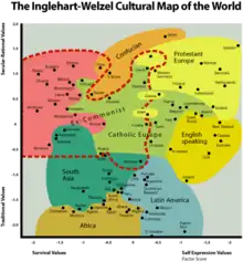 Trust is a major factor in political culture, as its level determines the capacity of the state to function.[68] Postmaterialism is the degree to which a political culture is concerned with issues which are not of immediate physical or material concern, such as human rights and environmentalism.[67] Religion has also an impact on political culture.[68]