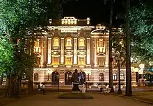 For many years, the seat of Alepe was the Joaquim Nabuco Palace, whose name, since 1948, is a tribute to the abolitionist of the same name and founder of the Brazilian Academy of Letters (Academia Brasileira de Letras - ABL).[74] Its construction, which had its approval by Provincial Law No. 963, was started in 1870, and its inauguration occurred on March 1, 1875. The author of the project was the engineer José Tibúrcio Pereira de Magalhães and the work was carried out by the architect José Inácio D'Ávila.[75] After functioning as the seat of the legislative power for much of its history, the Joaquim Nabuco Palace ceased to have this function as of August 1, 2017 and became the State Legislative Museum, displaying various objects and documents that show the history of this power, the palace is now open to visits by tourists and students.[76][77][78] The current headquarters of the state legislative power is the Governor Miguel Arraes de Alencar Building, which is named after former governor Miguel Arraes. The plenary of the new headquarters is called Governor Eduardo Campos Plenary.[77][79][80]
