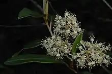 Pomaderris argyrophylla, commonly known as silver pomaderris,[2] is a species of flowering plant in the family Rhamnaceae and is endemic to north-eastern Australia. It is a shrub or small tree with lance-shaped leaves and white to cream-coloured or yellow flowers.