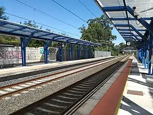 The railway stop has two platforms with video surveillance, shelters and electronic information boards indicating train arrivals and departures, a device for emergency calls and a clock.[5]