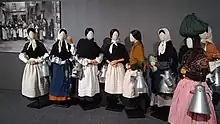 Between August and October 2022, the Museum of Pontevedra held a temporary exhibition of some 75 traditional folk costumes and crafts of Galicia, inspired and accompanied by American photographer Ruth Matilda Anderson's photographs taken between 1924 and 1926. After five years of research by the Ethnographic Association of Pontevedra Sete Espadelas, this exhibition presented a selection of traditional clothing mounted on mannequins and other items of daily life from the museum's historical collection as well as reconstructed in historical detail. Dating back almost 100 years, Anderson's pictures and the recreated scenes of rural life showed, among others, milkmaids gathered in Santiago de Compostela's Rúa Nova at dawn, women carrying ceramic pots to market, craftsmen selling wooden clogs and people in traditional raincoats made of straw. An accompanying catalog was published, with all of Anderson's photographs as well as of the costumes shown in this exhibition.[18][19] It was visited by more than 14,000 visitors, making it the most successful event of the museum in the five preceding years.[20]