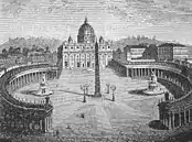 St. Peter's Square and its Basilica before Pope Pius IX added statues of Saints Peter and Paul
