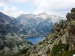 The Popovo Lake (Bulgarian: Попово езеро) is a glacial lake situated in the northern section of the Pirin mountain range, south-western Bulgaria. It is one of the eleven Popovi Lakes. The lake and its surroundings are among the most popular places for summer tourism in Pirin National Park.[1] It is situated at the bottom of the Popovski cirque and is surrounded by the peaks Sivria (2,591 m), Dzhano (2,668 m), Kralev Dvor (2,680 m), Momin Dvor (2,723 m) and Dzhengal (2,730 m).[1]