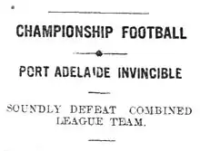 3. "FOOTBALL". Observer. Vol. LXXI, no. 5, 511. South Australia. 17 October 1914. p. 33. Retrieved 19 June 2018 via National Library of Australia.