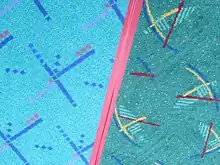 The airport's new carpet design features natural and man-made shapes found around the airport—referencing flight, nature, and structures such as airplane wings, hiking trails, leaves, runways, and waterways.[7][8][9] According to Oregon Public Broadcasting, the old and new carpet designs are similar in appearance "to the untrained, out-of-towner eye."[9] Installation was scheduled to continue through November 2015.[9] Local firm Hennebery Eddy Architects is overseeing its installation, having been contracted in June 2013 to select materials and manage logistics.[7] The new carpet is made of materials from recycled carpet and plastic bottles and jars.[8]