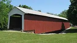 Possum Bottom Covered Bridge, also known as the Jackson's Ford Bridge and Hillsdale Bridge, is a historic Burr Arch Truss covered bridge located in Helt Township, Vermillion County, Indiana. It was built in 1876, and is a single span covered timber bridge. It measures 131 feet long and 14 feet wide. It was moved to its present location at the Ernie Pyle Rest Park in 1972.[2]:5–6