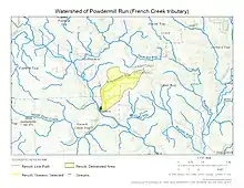 Course of Powdermill Run (French Creek tributary) in Pennsylvania