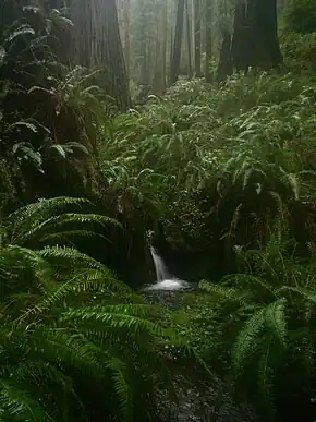 Besides Coast redwoods, other tall coniferous tree species in the park's forests include coast Douglas fir, Sitka spruce and western hemlock.