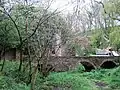 About 1786, the 3-storey cotton mill—possibly the only one in south Wales, or at least the largest, with 1,512 spindles—began an industrial complex on the Cleddau River. It was converted to a paper mill in 1816, establishing the paper-making industry in Haverfordwest, but by the end of the century was disused. In ruins by the 20th century, it was partially demolished in 1986. The bridge over the mill race—now no longer running— was constructed in 1812, is a Grade II listed structure and is still in use.[13]: 92 [14][15][16]