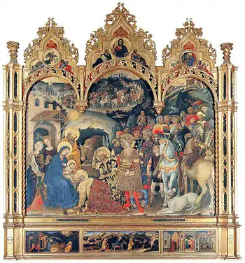The Adoration of the Magi is a painting by the Italian painter Gentile da Fabriano. The work, housed in the Uffizi Gallery in Florence, Italy, is considered his finest work, and has been described as "the culminating work of International Gothic painting".[1]