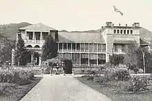 A previous building on the site, known as "The Cottage," had been used as the governor's residence since 1867. This residence, replacing it, was built in 1876.[1] The stone facade is local blue limestone. The roof is covered with Welsh Dutchess slate. The building contains Victorian columns and railings with Victorian Italianate style arched portals and loggias.[2]