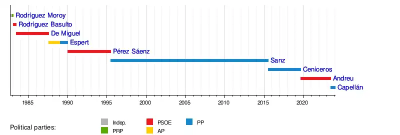 9. "Real Decreto 22/1990, de 9 de enero, por el que se nombra Presidente de la Comunidad Autónoma de La Rioja a don José Ignacio Pérez Sáenz" (PDF). Boletín Oficial del Estado (in Spanish). Agencia Estatal Boletín Oficial del Estado (9): 869. 10 January 1990. ISSN 0212-033X.