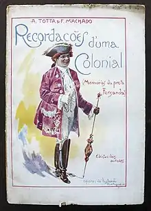 In 1912 Fernanda published an autobiography, Recordações d'uma Colonial (Recollections of a Colonial Subject), written with help from two friends.[3] The memoir tells the story of her life in Cape Verde and Portugal, but the authors sometimes forsook accuracy in favor of a more exciting story.[1][3] She diligently recorded all of the men who had shared her bed (but not their true names), and in the final chapter offered candid commentary on each man's sexual performance.[2][7] A modern reader notes that, in today's context, the language of the book is racist and reflects stereotypes of its time.[2]