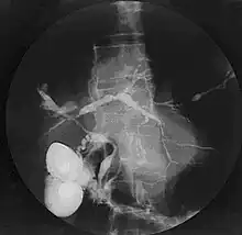 Historically, a cholangiogram would be obtained via endoscopic retrograde cholangiopancreatography (ERCP), which typically reveals "beading" (alternating strictures and dilation) of the bile ducts inside and/or outside the liver. Currently, the preferred option for diagnostic cholangiography, given its noninvasive yet highly accurate nature, is magnetic resonance cholangiopancreatography (MRCP), a magnetic resonance imaging technique. MRCP has unique strengths, including high spatial resolution, and can even be used to visualize the biliary tract of small animal models of PSC.[21]