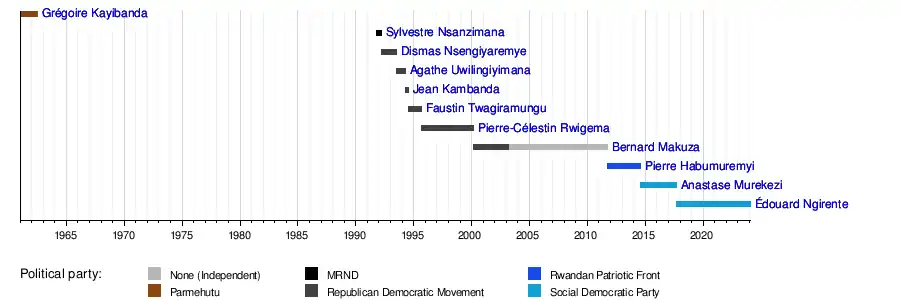 Édouard NgirenteAnastase MurekeziPierre HabumuremyiBernard MakuzaPierre-Célestin RwigemaFaustin TwagiramunguJean KambandaAgathe UwilingiyimanaDismas NsengiyaremyeSylvestre NsanzimanaGrégoire Kayibanda