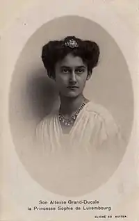 Princess Sophie Caroline Marie Wilhelmine of Luxembourg (14 February 1902 24 May 1941) was the sixth and youngest daughter of Grand Duke William IV and his wife, Infanta Marie Anne of Portugal.