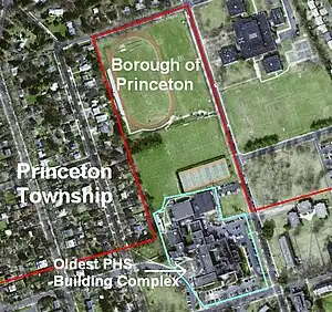 Princeton High School (PHS) is a four-year comprehensive public high school in Princeton, in Mercer County, in the U.S. state of New Jersey, operating as part of the Princeton Public Schools district, which serves all public school students in Princeton. Students from Cranbury Township attend PHS as part of a sending/receiving relationship with the Cranbury School District.[7][8] The school has been accredited by the Middle States Association of Colleges and Schools Commission on Elementary and Secondary Schools since 1932 and is accredited through January 2026.[4]