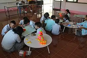 Project-based learning also gives students the opportunity to explore problems and challenges that have real-world applications, increasing the possibility of long-term retention of skills and concepts.[15]