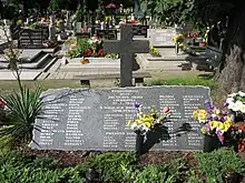 ![]() Tombstone to the victims of Przyszowice massacre. It lists the victims with the statement: "Murdered by the Red Army." Placed during the 2005 commemorative event | |