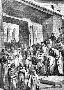 Psamtik III (Ancient Egyptian: ꜥnḫ-kꜣ-n-Rꜥ Psmṯk, pronounced Psamāṯək[1]), known by the Graeco-Romans as Psammetichus or Psammeticus (Ancient Greek: Ψαμμήτιχος), or Psammenitus (Ancient Greek: Ψαμμήνιτος), was the last Pharaoh of the Twenty-sixth Dynasty of Egypt from 526 BC to 525 BC. Most of what is known about his reign and life was documented by the Greek historian Herodotus in the 5th century BC. Herodotus states that Psamtik had ruled Egypt for only six months before he was confronted by a Persian invasion of his country led by King Cambyses II of Persia.[2] Psamtik was subsequently defeated at the Battle of Pelusium, and fled to Memphis where he was captured. The deposed pharaoh was carried off to Susa in chains, and later committed suicide.