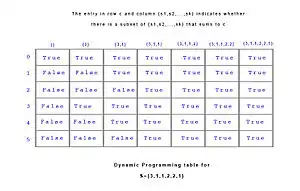 In computer science, pseudopolynomial time number partitioning is a pseudopolynomial time algorithm for solving the partition problem.