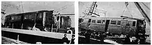 Drewry railcars being unloaded in Puerto Deseado, 1949.