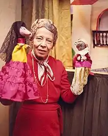 Belpré was born in Cidra, Puerto Rico.[3] There is some dispute as to the date of her birth which has been given as February 2, 1899, December 2, 1901 and February 2, 1903.[4][lower-alpha 1] Belpré graduated from Central High School in Santurce, Puerto Rico in 1919 and enrolled at the University of Puerto Rico in Río Piedras, where she originally planned on becoming a teacher.[5] But, in 1920, Belpré interrupted her studies to attend her sister Elisa's wedding in New York City, where she was recruited by a public library effort to hire young women from ethnically diverse backgrounds.[5] This first job led to an remarkable career that had Belpré travel the city, from the Bronx to the Lower East Side, telling stories in both English and Spanish, something that hadn't been done before. Belpré broke the barriers that led the Spanish speaking community to believe the library was "only English."[5] Except for brief interludes, Belpré remained in New York City for the rest of her life.