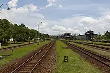 Purwokerto Station originally had six train lines with track 2 being a straight line. Since the operation of the Purwokerto–Patuguran double track segment as of 9 September 2009,[9][10] the lines increased to seven active lines. Line 2 is the main line / straight line for a single track from / to Kroya–YogyakartaSurabaya and also for the upstream double track (to CirebonJakarta). Line 3 is straight line for downstream double path (from Cirebon–Jakarta), both of which serve as the arrival and departure routes of train. Line 1 is used when line 2 and 3 are carrying a train. Lines 4-6 are usually for locomotive parking and railway circuit. From line 7 three additional lines access the locomotive depot and station located at the northwest of the station. All paths other than the lines connected with the dials are connected directly to the main line.
