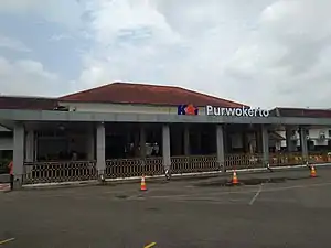 Purwokerto Station (PWT) is a large type A railway station located in West Purwokerto, Banyumas Regency, Central Java, Indonesia. The station is located at an altitude of 75 m. It is the largest station under the management of PT Kereta Api Indonesia (Persero) Operation Area V Purwokerto. As a large station, all trains that pass through the Prupuk–Kroya railway line must stop at this station.