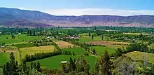 The Putaendo river valley is located in the northern Zona Central and is a part of the Aconcagua river watershed located in the transitional zone, with respect to geomorphology (transitioning from the Norte Chico to the longitudinal Chilean Central Valley) and climatology (from semiarid to a temperate Mediterranean). Putaendo spans an area of 1,474.4 km2 (569 sq mi).[2]