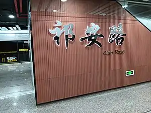Qi'an Road (Chinese: 祁安路; pinyin: Qí'ān Lù) is a metro station on the Line 15 of the Shanghai Metro. Located at the intersection of Qi'an Road and Lianliang Road in Putuo District, Shanghai, the station was scheduled to open with the rest of Line 15 by the end of 2020.[1] However, the station eventually opened on 23 January 2021 following a one-month postponement.[2] It is located in between Nanda Road station to the north and Gulang Road station to the south.