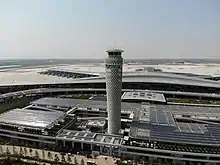 Qingdao Jiaodong International Airport (IATA: TAO, ICAO: ZSQD) is an international airport serving the city of Qingdao in East China’s Shandong province. It received approval in December 2013, and replaced Qingdao Liuting International Airport as the city's main airport.[3] It is located in Jiaodong, Jiaozhou, 39 kilometres (24 mi) from the center of Qingdao.[2] The airport opened on 12 August 2021[1] and is currently the largest airport in Shandong, capable of handling 35 million passengers annually.[4]