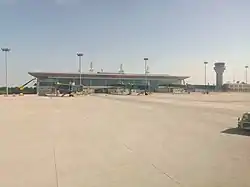 The airport occupies an area of 2,195 mu. It has a runway that is 2,600 meters long and 60 meters wide, and a 10,592-square-metre (114,010 sq ft) terminal building. It is designed to handle 500,000 passengers and 1,200 tons of cargo annually.[2]