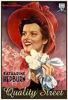 Quality Street is a 1937 American historical comedy film made by RKO Radio Pictures.[1][2] It was directed by George Stevens and produced by Pandro S. Berman. Set in 19th-century England, the film stars Katharine Hepburn and Franchot Tone. Joan Fontaine makes one of her early (uncredited) film appearances. The screenplay was by Allan Scott, Mortimer Offner, and Jack Townley, based on the 1901 play Quality Street by J. M. Barrie.