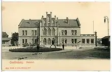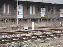 Quedlinburg station also played a significant role in times of peace. During the First World War, Quedlinburg Station was used to transport prisoners of war who were being transported to or from the Quedlinburg POW camp on the Ritteranger, two kilometres north of Quedlinburg. The first prisoners arrived in Quedlinburg on 24 September 1914.[4] The railway area was heavily fought over in March 1920 during the Kapp Putsch. Evidence of this is provided by photographs of the bombed station tunnels, although the history of the fighting is not known in detail.[5]