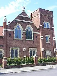 • A hall on Howard Avenue was opened for worship by the Moravian Church in 1895. The adjoining church building was added in 1911[23]