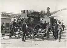 The station opened in November 1862.[4] By March 1863 more than 1000 people lived in the town and the police force consisted of an Officer, a Foot Sergeant, a Mounted Constable, eight Foot Constables, a Detective and four horses. There were also police officers at Arrowtown (7), Frankton (1), Arthurs Point (2) and Maori Point (1).[5] The Gold Escort was distinct from the police; contracted to Cobb and Co. Near Skippers and along the Shotover, branch escorts transported prisoners who were shackled to posts halfway along. The escort troopers were armed with carbines and swords. The Otago Daily Times reported that robberies were numerous and frequent drunkenness prevalent, with pick-pocketing complaints common. Claim jumping and stick-ups were also common. In 1867 there were police stations at Queenstown, Arrowtown, Frankton, Skipper's, Maori Point, Nevis, Nokomai and Cardrona.[6]