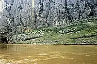 On the south side of the river (Baiyan Mountain) a series of rectangular holes is carven into the cliff face. The holes are almost exactly 1 metre apart and 1 metre deep. The holes zig-zag up part of the cliff face in a Z-shape. These holes are known as the Meng Liang Stairway (孟良梯).
