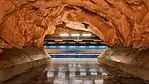 Like some other stations on the Stockholm metro, it uses organic architecture, which leaves the bedrock exposed and unsculptured and the station appearing to be based on natural cave systems.