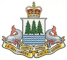 Le Régiment du Saguenay is a Primary Reserve infantry regiment of the Canadian Forces based in Saguenay, Quebec. The regiment was founded in 1900 in Roberval, Quebec as the 18th Saguenay Battalion of Infantry.[2]