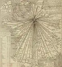 The rail network rapidly expanded throughout the country. The network was built from Paris in the form of a star network, known as the Legrand star.