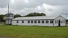 The restored airfield control tower and pilots' block. The top half of the tower was previously a cab shelter on Weston seafront. The pilots' block now houses the Weston Aviation Exhibition of the airfield's history