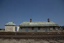 The station building is a type 9, non-standard timber building with brackets and a tin roof.[1][7]